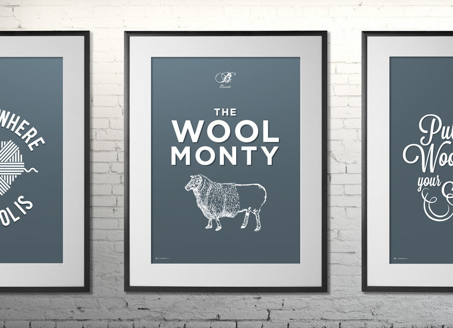 Set of 3 typographic prints commissioned by Abrahma Moon and Bronte wool, for display in their shop in Settle, North Yorkshire.